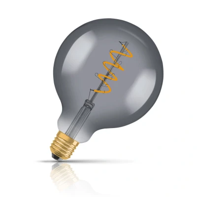 This stylish LED G125 globe light bulb from the Osram Vintage 1906 collection has a decorative smoked glass finish which gives an attractive and warm, feel-good light that works equally as well at home as in commercial settings such as restaurants and bars.Consuming only 4W of power this LED filament G125 globe is a popular replacement for traditional decorative or vintage light bulbs.Unlike the traditional incandescent G125 globe light bulbs it replaces, this LED globe light bulb will last for years, with an average rated life of 15,000 hours. So as well as being one of the most stylish light bulbs available today, it is also one of the most efficient. The ES-E27 Edison screw cap is compatible with existing light fittings, making installation as easy changing a light bulb.Producing a cosy 140 lumens of 1800K extra warm light, these smoke grey finish vintage LED globe light bulbs are best suited for decorative lighting purposes and are ideal for creating a decorative retro look in any home, bar or restaurant.Features a commonly used ES-E27 Edison screw (27mm) cap/base. Also known as a G125 globe light bulb due to its 125mm diameter.