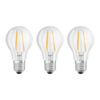 Osram LED Base Classic A bulb, bulb shape with E27 socket, not dimmable, Replaces 6W = 60 Watt, filament style clear, cool white 4000 Kelvin, 3 pack [Energy Class ++]