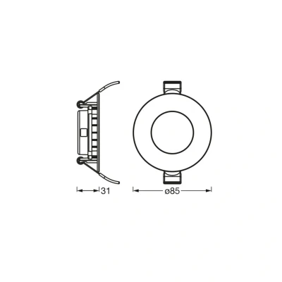 Design: White recessed light with 85mm diameter, slim design, ideal for limited ceiling space, discreet and modern plastic housing Technology: 4.5 W LED, 240 lumens, 4000K cool white for pleasant work lighting, Colour rendering CRI≥80 for natural colors Processing: High quality Plastic polypropylene/polyamide, Durable LED technology, integrated Driver, robust construction Installation: Complete assembly and connection accessories included, for Interior applications, connection by professionals Application: Interiors such as corridors, Entrance areas, Staircases, Living room, Bedroom, Kitchen and Cellar, versatile This product is a lighting product. Lighting products are luminaires that can be disassembled to separately check the light source(s) they contain. This product contains a light source of energy efficiency class E