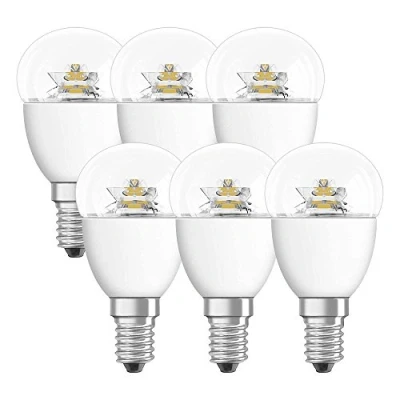 Osram LED Star Classic P/LED Lamp, Mini Ball Shape, with Screw Base: E14, 220 to 240 V, 2700 K, Clear, Warm White, 5.70 W, 40 W Replacement, 6 x Pack of 1
