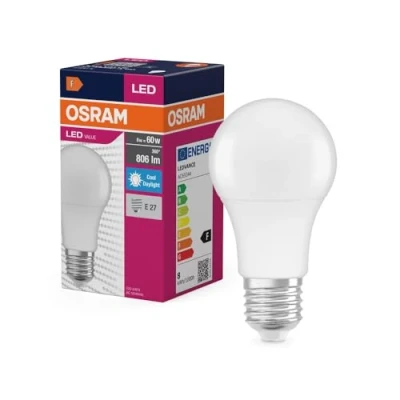 OSRAM LED Star Value Classic A60 Bulb for E27 Socket, Pear Shape, FR 806 Lumens, Daylight White (6500K), Replacement Conventional 60W Incandescent Bulbs, Non Dimmable