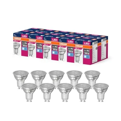 OSRAM Led Star Value Par16 Lamp for Gu10 Base, Reflector Lamp, Gl, 575 Lumens, Cold White (4000K), Replacement Conventional 80W Light Bulbs, Not Dimmable, 10 Pack
