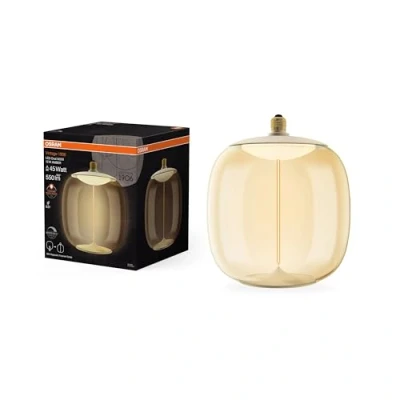 Vintage Big Oval E27 12W 1,800 K filament LED bulb, amber tinted, dimmable This bulb from the Vintage Big series from Ledvance is characterised by its special shape and size, its dimmability and its decorative appearance with the special filament magnet technology without filament holder. It emits extra warm light and is both bulb and lampshade - perfect for any lampshade-free light.