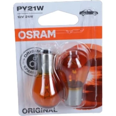 Genuine Osram original equipment quality PY21W-7507 (581) amber replacement bulb as used in new vehicles 12V 21W BAU15S single filament Fully Road legal and ECE Reg 37 compliant Supplied in a twin blister pack