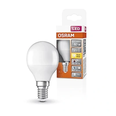 OSRAM Superstar+ Classic P 40 FR Led Lamp, E14 Base, Mini Ball Shape, 4.9W, 470Lm, 2700K, Warm White Light, Reduced Blue Component, Low Eye Strain, Very Energy Consumption