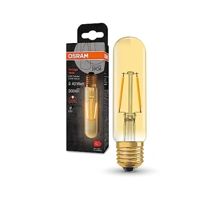 Osram Tubular LED Light Bulb E27 2.5W (20W Eqv) 127mm Extra Warm White Gold Filament Vintage 1906 Screw