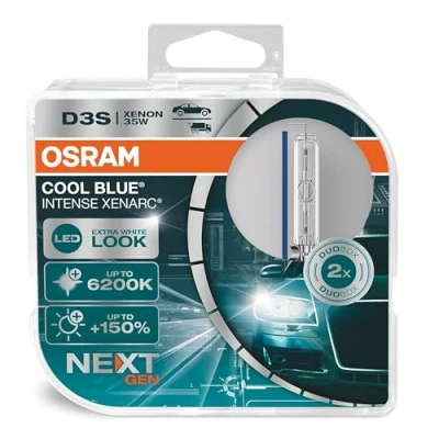 OSRAM XENARC COOL BLUE INTENSE D3S, +150% more brightness, up to 6,200K, xenon headlight lamp, LED look, duo box (2 lamps), 66340CBN HCB