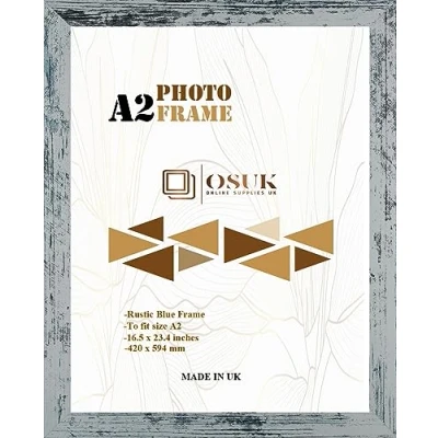OSUK A2 Frame Rustic Blue In Size 42 x 59.4 cm Photo with Clear Perspex Front & Wall Mounting to Hang Portrait or Landscape (Rustic Blue)