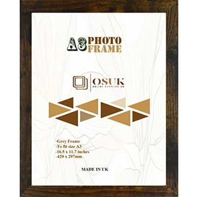 OSUK A3 Frame Rustic In Size 30 x 42cm Photo with Clear Perspex Front & Wall Mounting to Hang Portrait or Landscape (Rustic)