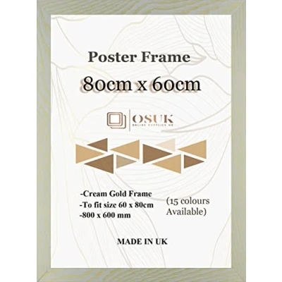 OSUK Cream Gold Poster Frame 80 x 60cm Large Photo 80x60cm Picture Frames With Clear Perspex Front & Wall Mounting 80cm