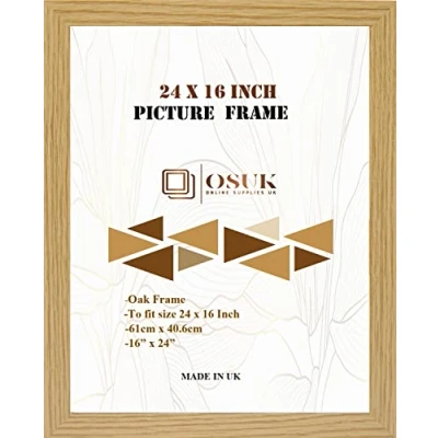 OSUK Oak Photo Frame 61 x 40.6cm Large 24 16 Inch Picture Frames With Clear Perspex Front & Wall Mounting 16" 24" (Oak)