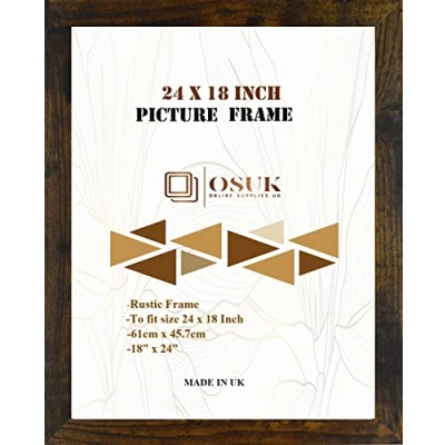 MATERIAL: These 24x18 Inch picture frames are made of synthetic wood MDF boards strong like wood does not have knots or kinks which disturb the smooth surface which give your home modern interior touch and are perfect for your gallery wall decoration. Moulding Width 30mm and Moulding Depth 15mm. DISPLAY ORIENTATION: This 18x24inch rustic frame comes complete with hanging fixings so it can be easily hung on a wall with a nail, screw or picture hook. These 24x18” frames can be displayed in both portrait and landscape orientation, so it doesn’t matter which way round your photo is. READY FRAME: 24 x 18 frames comes with Styrene (plastic glass), MDF backing, & hooks, So you dont have to buy anything separately. These 61cm x 45.7cm rustic frame sizes are perfect for actual picture size that will fit inside the frame. SAFE & SECURE: These 18”x24” rustic frames with plastic glass (Styrene). Styrene is a low-cost lightweight and shatter-resistant glazing material. Ideal where safety is a consideration, but does require careful handling. PROTECTIVE PACKAGING AND FAST DISPATCH: We try to provide quality packing so you don’t have to worry about any damage. But if your parcel gets damaged during transit we will be happy to replace it as quick as possible. COLOUR - All 24x18 photo frame are in a range of Colours Including Black Photo Frame - Oak Photo Frame - White Photo Frame – Walnut poster frame - Silver - Gold – Wooden Large Photo Frame And Grey Photo Frames to proudly display your memories and to accent contemporary decor. 61x45.7cm frame black are with Different variations in long picture frames walls or large photo frames within Premium quality to Decor your life memories. IMPORTANT NOTE: Peel off the protective sheet from both sides of the Perspex sheet. Picture display in the frame will not supply the item.
