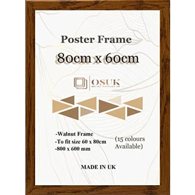 OSUK Walnut Poster Frame 80 x 60cm Large Photo 80x60cm Picture Frames With Clear Perspex Front & Wall Mounting 80cm
