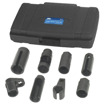 OTC's set of 8 sensor sockets covers sensor applications found on today's vehicles Included sockets are slotted and contoured to provide easy access to, and removal/installation of, hard to reach sensors Includes: No. 4673-1 - 29mm Vacuum Switch & O2 Socket - 1/2 Dr.; No. 4673-2 - 7/8 in. Vacuum Switch & O2 Socket (wide slot) - 3/8 Dr.; No. 4673-3 - 27mm Thermal Sensor Switch - 1/2 Dr. No. 4673-4 - 7/8 in. Vacuum Switch & O2 Socket (narrow slot) - 3/8 Dr.; No. 4673-5 - 1-1/16 & 1 in. Oil Press. Sending Unit Socket - 3/8 Dr.; No.4673-6 - 7/8 in. O2 Sensor Socket - offset 1/2 Dr. No. 4673-7 - 7/8 in. O2 Sensor Socket (low profile) - offset 3/8 Dr.; No. 4437-8 - 1-1/16 in. and 1 in. Oil Pressure Socket (short access) - 3/8 Dr.; durable blow-molded plastic storage case