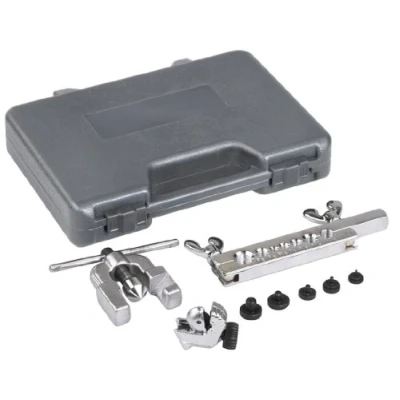 Designed for steel brake lines where double flaring is required Also performs 45 degree single flares on 3/16" 1/4" 3/8" 7/16" 1/2" and 5/8" copper aluminum brass and magnesium tubing Includes the tubing cutter and adapters for double flaring 3/16" 1/4" 5/16" 3/8" and 1/2" tubing Housed in a plastic blow-molded case International products have separate terms, are sold from abroad and may differ from local products, including fit, age ratings, and language of product, labeling or instructions.