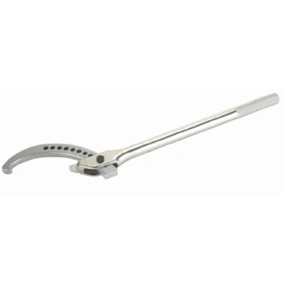 Drop-forged and features extra heavy construction and a 3/4 inch thick 11-position hook jaw Capable of gripping fasteners from 4-3/4 inches to 12-3/4 inches OD Handle is 25-3/4 inches long and 15/16 inch in diameter