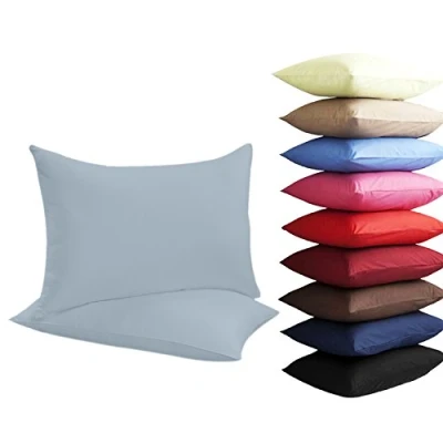 Other NEW 2 x PILLOW CASES HOUSEWIFE PLAIN COVER POLY COTTON BEDROOM PAIR PACK (Sky Blue)