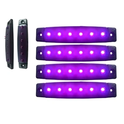 Ultra High-end waterproof, shockproof, weatherproof, dustproof. The lights come with a good, sturdy design. The lamp body is fully sealed. You can even drive in a rainy Day. Led Colours: Purple - Light and Bright, Voltage: 24 Volts, Length: 95mm (3.74 Inch), Width: 20mm (0.80 inch), Number of Leds per marker: 6, 85 Mm Distance Between Fixing Holes Excellent Brightness: Each side marker light comes with one piece of high-intensity LED that outputs bright light for perfect marker light and provides perfect visibility. Wide application. Suitable for most trucks, trailers, lorries, cars and van chassis, Bus, SUV, Quad Caravan, and Camper Motorhome Horsebox ATV Flatcar Flatbed Dray Cart Box as front side marker lights. It's easy to install. The lights are made of high-quality materials for more stable quality and a longer service life. It is designed to work on all vehicles!