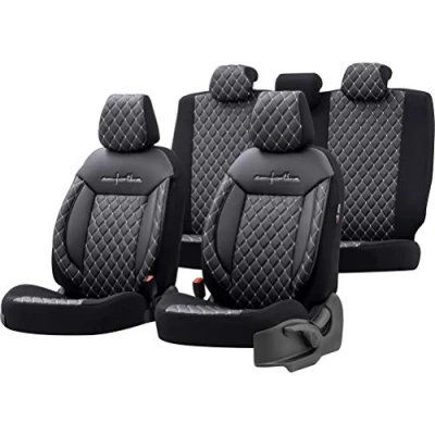 otoM Universal Leather/Fabric Seat cover set 'Comfortline' Black/Grey 11 pieces compatible with Side Airbags