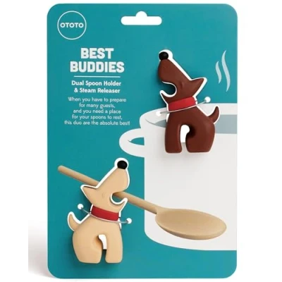 Meet Best Buddies, 'Paw-fect' Kitchen Spoon Rest - When your pot is boiling over or you need a free hand, our Buddies are here as your loyal watchdogs on command! Design Awarded OTOTO Studio brings you these adorable doggos, ready to make cooking less of a hassle. Made of food grade silicone, these drip-free essential, heat-resistant utensil rests can be placed on kitchen counter, stove tops, or in the dining area for a more convenient serving and meal prepping. Meet Best Buddies, 'Paw-fect' Kitchen Spoon Rest - When your pot is boiling over or you need a free hand, our Buddies are here as your loyal watchdogs on command! Design Awarded OTOTO Studio brings you these adorable doggos, ready to make cooking less of a hassle. Made of food grade silicone, these drip-free essential, heat-resistant utensil rests can be placed on kitchen counter, stove tops, or in the dining area for a more convenient serving and meal prepping. Paw-sitively' Amazing Gift - Looking for new home gift ideas, housewarming gifts, or funny kitchen gadgets? How about cute spoon rests or unique kitchen utensils holder? Our nifty spoon holders for stove top are the perfect present for foodies, home cooks, master chefs, and anyone who loves a cute surprise. It's a 'paw-some' cooking spoon rest for kitchen counter. With Buddies as your trusty meal-prepping pals, cooking is more fun and delightful! No More 'Ruff' Time Preparing Meals - Say goodbye to drips and drops on countertops! Simply place the ladle holder on a bubbling pot and behold - our Buddies don't slide or slip. They sit still on the lid with firm grip. These kitchen spoon holders also function as a steam releaser! Multitasking in the kitchen is now easier with these cute puppies who prevent spill and splatter. A fantastic time in the kitchen is guaranteed with the Best Buddy Spoon Rest duo. 'Bone' Appetit! The 'Ulti-mutt' Kitchen Staples create delicious recipes with no hassle for Best Buddies are here while you hustle! Whether you're using a spoon, spatula, spaghetti server, or a ladle, these little fellas ensure you're comfortable while cooking. No need to scatter utensils on a tray. Let it sit on the pot to save space. When you're done, simply toss it into the dishwasher for quick and easy clean. These stove spoon holder rest combine fun and function, making them the 'ulti-mutt' kitchen staple