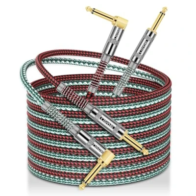 【Low Noise High Fidelity】OTraki guitar cable features a high-purity 24AWG oxygen-free copper (OFC) center conductor, enhancing signal transmission and stability. With PVC insulation and a high-density stranded copper double shield, the cables minimize physical noise while delivering high stability and high-fidelity sound reproduction. 【Heavy Duty Metal Connectors】The 6.35mm gold-plated connectors of the electric guitar cable are not easily corroded and boast higher electrical conductivity and oxidation resistance. Zinc alloy metal shell makes connection tighter and not easy to loosen, with pure copper protector that can be rotated to protect the soldered connections better. Spring coils reduces the rate of cable damage and extend cable working life. 【Excellent Durability & Flexibility】Our 13ft/4m electric guitar instrument cable features an anti-tangle nylon braided jacket that enhances tensile strength and abrasion resistance while effectively protecting the internal wiring from damage during twisting and knotting. OTraki guitar cables ensure the use of safety and solve the noise electromagnetic interference problem. 【Friendly Right Angle】The jack lead is designed with a 90° right angle at one end. Compared to the straight plug, the right-angle design shortens the signal transmission path and reduces signal loss, resulting in clearer sound quality and richer details. It can also protect the cable from unwanted bending damage. In addition, the right-angle cable features a more compact shape, making it suitable for use in narrow spaces. 【Strong Compatibility】The 1/4 inch (6.35mm) TS plug of amp cable can be inserted into audio devices with 6.35mm connector diameter, such as electric guitars, mixers, amplifiers, basses, ukuleles, loudspeakers, microphones, keyboards, pedalboards, electronic pianos, drums, decoders, equalizers, etc. It can also be used for smart-home devices, karaoke speaker, professional stage audio, and more.