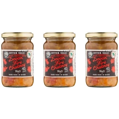 Otter Vale Devon Fire Chutney, Scotch Bonnet chilli heat with a hint of tangy fruit, hand made in Devon, gluten free, 300g glass jar x 3