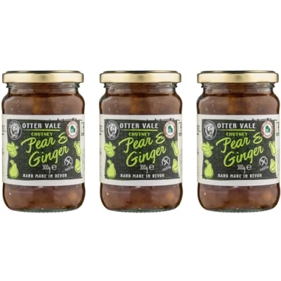 Otter Vale pear & ginger Chutney, fruitiness with great stem flavour, hand made in Devon, gluten free, 300g glass jar x 3