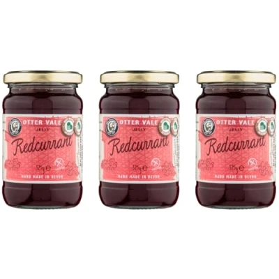 Otter Vale redcurrant Jelly, fresh and fruity flavour, hand made in Devon, gluten free, 300g glass jar x 3