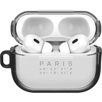 OtterBox Clear Series Headphone Case for AirPods Pro (Pro 2) Shockproof, Drop proof, Ultra Slim, Scratch and Scuff Protective Apple AirPods, Includes Carabiner, Paris