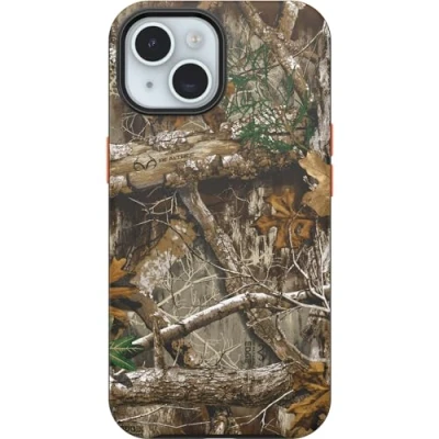OtterBox iPhone 15, 14, and 13 Symmetry Series Case REALTREE EDGE (Orange/Camo), snaps to MagSafe, ultra sleek, raised edges protect camera & screen