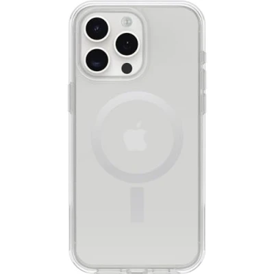 OtterBox iPhone 15 Pro MAX (Only) Symmetry Series Clear Case (Clear), snaps to MagSafe, ultra sleek, raised edges protect camera & screen