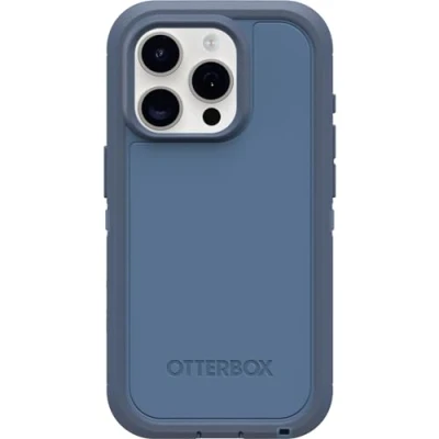 OtterBox iPhone 15 Pro (Only) Defender Series XT Case BABY BLUE JEANS (Blue), screenless, rugged, snaps to MagSafe, lanyard attachment