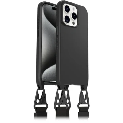 OtterBox React Lanyard Case with MagSafe for iPhone 15 Pro, Ultra Slim, Protective Adjustable and Detachable Strap, Tested to Military Standard, Black, No Retail Packaging