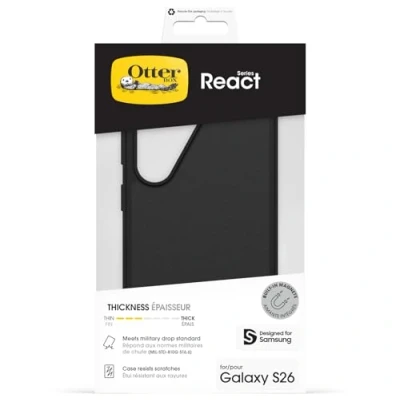 OtterBox React Series Case with Magnets for Samsung Galaxy S26, Shockproof, Drop proof, Ultra Slim, Protective Thin Case, Tested to Military Standard, Black