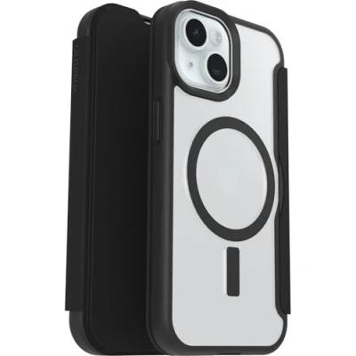 OtterBox React Series Folio Case for iPhone 16e, 15, 14, 13, Shockproof, Drop proof, Protective with Card Holder, Tested to Military Standard, Clear/Black, No Retail Packaging