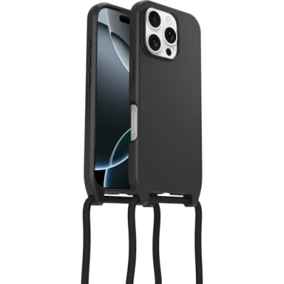 OtterBox React Series Lanyard MagSafe Case for iPhone 16 Pro, Ultra Slim, Protective with Adjustable and Detachable Strap, Tested to Military Standard, Black, Non Retail Packaging