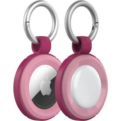 OtterBox Rugged AirTags Case Shockproof, Drop Proof, Ultra Slim, Rugged, Protective Thin for Apple AirTags, Includes Carabiner, Pink Sunset
