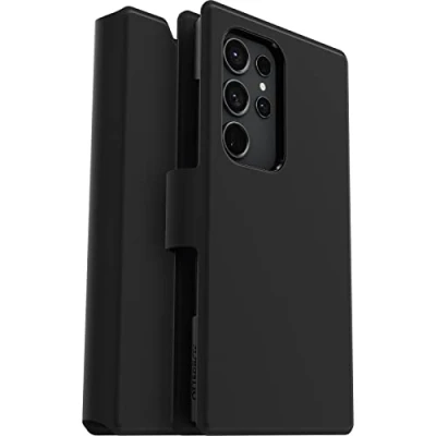 OtterBox Strada Via Case for Samsung Galaxy S23 Ultra, Shockproof, Drop Proof, Slim, Soft Touch Protective Folio with Card Holder, 2x Tested to Military Standard, Black