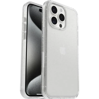 OtterBox Symmetry Clear Case for iPhone 15 Pro Max, Shockproof, Drop proof, Protective Thin Case, 3x Tested to Military Standard, Antimicrobial Protection, Stardust