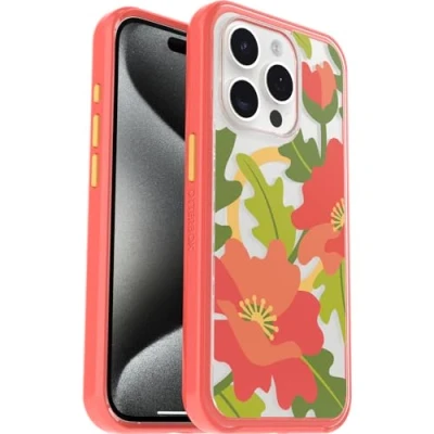 OtterBox Symmetry Clear MagSafe Case for Apple iPhone 15 Pro, Shockproof, Drop proof, Protective Thin Case, 3x Tested to Military Standard, Quilted Poppies