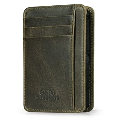Amazon EXQUISITE LEATHER CRAFTSMANSHIP - The Otto Angelino Ultra Slim Wallet is crafted with high quality, genuine cowhide leather attached with fine and durable stitching, giving it a sleek look and a slim body. An exemplary model of artisanal craft combining the pleasant feel and the handsome look of leather without sacrificing versatility and convenience. ALL ESSENTIALS in one PLACE - The Otto Angelino Ultra Slim Minimalist Cardholder is designed to accommodate all your essentials, in one compact space. TRAVEL READY & RFID BLOCKING WALLET - A minimalist design, these wallets are perfect for keeping vital information safe in a front or back pocket while traveling by airplane or subway. CONVENIENT - The Otto Angelino Ultra Slim Minimalist Cardholder is slim and convenient, specifically designed to reduce bulk and keep your essential everyday items in one place. ULTRA-SLIM CONVENIENCE - Each wallet is slim, lightweight and made for daily travel, keeping important credit, bank or business cards close.