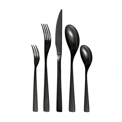 Otto Koning Berlin 20 Piece Black Cutlery Set for 4 People, Stainless Steel Flatware, Tableware Silverware with Steak Knife and Fork Sets, Elegant Design, Mirror Polished Dishwasher Safe