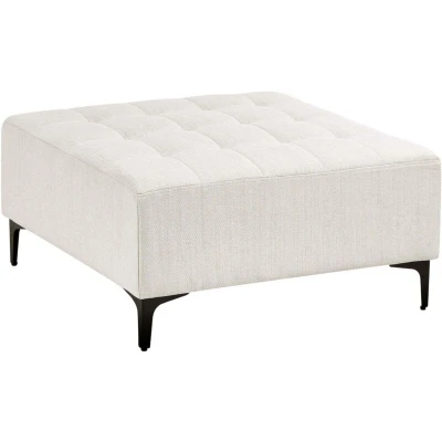 Upholstered Tufted Ottoman. This modern footstool is the perfect addition to a sofa set. Fully upholstered in high-quality, smooth fabric and decorated with elegant tufting, it suits any interior colour scheme. The piece is elevated on sleek black metal legs that add a contemporary touch and subtle contrast. Combine it with other elements from the collection to create a seating arrangement tailored to suit you. Details: Product Type: Ottoman General Color: White, Black Shade: Off-White Material Type: Fabric Main Material: Fabric Additional Material: Plywood Filling Material: Foam Material Composition: 100% Polyester Shape: Square Pattern: Solid Seat Foam Density: 28 kg/m3 Storage: No Dimensions: Depth: 80 cm Width: 80 cm Height: 41 cm Seating Surface: 80x80 cm Weight: 11 kg Weight Capacity: 150 kg Offer Includes: 1 x Ottoman Key Features: Top-Notch Sitting Comfort, Works Great with Many Interior Styles, Elegant Design, High-Quality Upholstery Assembly Information: Legs to be Fitted.