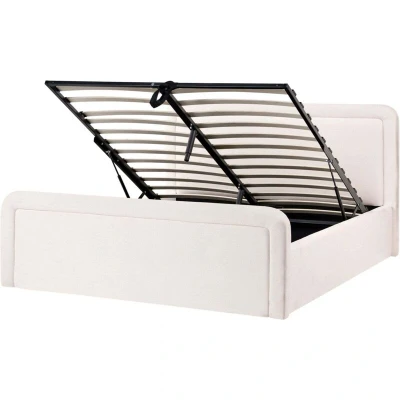 Upholstered Storage Bed with Lift-Up Base. Upgrade your bedroom with this stylish upholstered double bed that blends luxury with smart storage. The minimalist headboard offers soft support for relaxing, while the easy-lift slatted base reveals a massive hidden compartment for all your extra bedding. It’s a sleek, modern focal point designed for both comfort and a clutter-free home. Details: Product Type: Double Bed Style: Scandinavian General Color: White, Black Shade: Off-White Material Type: Fabric Main Material: Fabric Additional Material: Poplar Wood Storage Material: Nonwoven Fabric Material Composition: 100% Polyester Fabric Upholstered Back: No Storage Type: Ottoman Storage: Yes Dimensions: Headrest Dimensions: 181x105 Width: 181 cm Storage Dimensions: 163x211 Length: 219 cm Height: 105 cm Sleeping Surface: 160x200 cm Weight: 79 kg Weight Capacity: 300 kg Offer Includes: 1 x Bed Frame, 1 x Slatted Frame (26 Sprung Slats), Not Included: Mattress, Bedding and Cushions Key