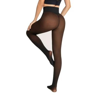 [Tummy Control Waistband] Features a high-rise waistband made with 280D high-stretch compression fabric that smooths the stomach, flattens the waistline, and holds everything in—comfortable support with a sculpting effect. [Butt-Lifting Seam Design] Shaping seams at the back contour and lift the butt to naturally enhance your curves and create a flattering silhouette. [Cozy Fleece Lining] Ultra-soft fleece interior keeps you warm and comfortable throughout fall and winter—perfect for daily wear, even on freezing days. [Four Shades for a Natural Match] Lined with four natural hues — Light, Tan, Bronze, Cocoa — designed to blend with different skin tones and elevate the “no tights” illusion. [Opaque Appearance with Bare-Leg Illusion] Dense knit fabric creates a non-see-through finish that looks like sheer black tights from the outside. Inside, it's lined with nude-toned fleece to match your skin tone and give a natural “bare-leg” effect—stylish and warm. [Thermal Comfort] Thoughtfully engineered to keep you warm without overheating. The fleece interior traps heat while remaining breathable, providing lasting thermal comfort for chilly commutes, office wear, or outdoor strolls.