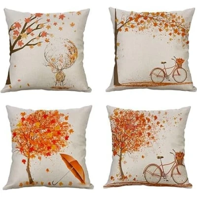 Oumao Decorative Autumn Fall Style Throw Pillow Cover Maple Leaf Bicyle Tree Cushion Case Shell for Car Sofa Bed Couch 18 x Inch