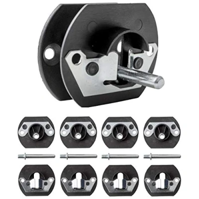 CONTENT = 4 interlocking connectors for sofas, each consisting of 2 plastic plates connected between lotus through a metal plug. 100% Made in Italy. EASY ASSEMBLY: The metal pin connects the two plastic plates with an interlocking mechanism. The plates mate perfectly to form an interlocking coupling and hold the parts of the sofa together. Material = Iron and plastic. Colour = Black. Dimensions = Plastic plate size: 70 mm x 55 mm. Metal pin length = 75 mm VARIOUS APPLICATIONS: Use these connectors to keep your sofas securely joined
