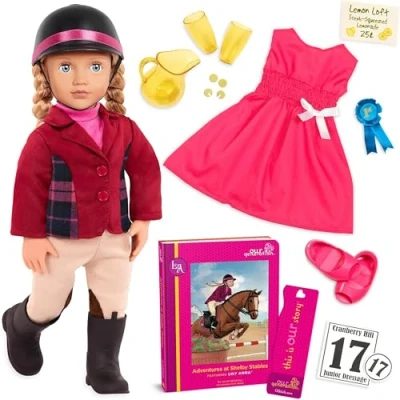 18-inch Equestrian Doll: saddle your horses and blaze new trails with Our Generation doll Lily Anna! Detailed Features: bright blue eyes that open and close with long blonde hair that's fun to brush and style! Posable: huggable soft body with bendable arms and legs to easily change outfits and ride Our Generation horses! Beautifully Illustrated Storybook: follow Lily Anna's journey in her easy-to-read chapter book, Adventures at Shelby Stables! Includes: doll, 2 complete outfits, storybook, bookmark, and fun horse show accessories., Manufacturer: Maison Battat Inc.