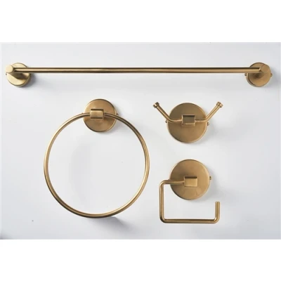 This eye-catching bathroom fittings set combines style with quality manufacturing, without breaking the bank. The contemporary set provides consistency throughout and consists of a Toilet Roll Holder, a Towel Ring, a Robe Hook and a Towel Rail. Give your bathroom its finishing touches with matching fittings and accessory sets. With concealed fixings the practical design integrates seamlessly into your bathroom. Supplied with all of the screws and fastening required it is easy to install.Product SpecificationIncludes Towel ring, Toilet roll holder, robe hook, Towel railCan be fixed onto a variety of wallsSturdy materialClassic colours available to match any decorEasily wiped over with a dry, damp cloth to cleanTowel Ring: 23L x 7.5W x 25.5HcmToilet roll holder: 12.75l x 7w x 14HcmRobe hook: 15Lx 7W x 9.5HcmTowel Rail: 60.25L x 7.6W x 5.1HcmTechnical Specification:Colour: Brass Product Type: Bathroom Accessories