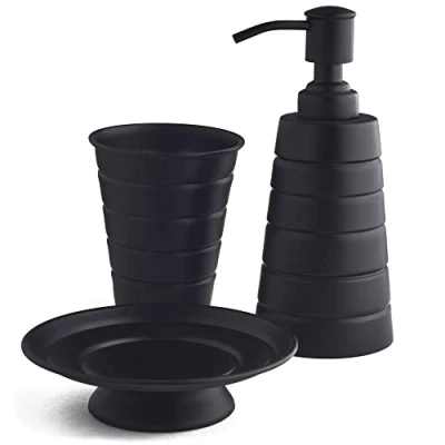 OURHOUSE THREE PIECE BATHROOM CADDY SET – This bathroom caddy set is ideal for any modern or traditional bathroom. Position on or close to your sink to have access to all of your bathroom essentials. The three pieces in this set look great and offer everything you need within easy reach of your sink. TOOTHBRUSH HOLDER – Store your toothbrushes safely and hygienically in this toothbrush holder. Whether storing one or brushes for the whole family, this beaker is ideal as the height ensures they won’t topple over, while the circumference of the holder keeps it upright and stable. HANDWASH DISPENSER – Easy to fill and maintain, this handwash, soap or lotion dispenser looks great and fits any bathroom style. To fill simply unscrew the top and pour the liquid soap or lotion into it. One push of the plunger then gives the right amount to wash your hands without wasting unnecessary amounts. Once empty it is easy to wash out and refill. SOAP DISH – Ideal for any bar of soap this soap dish keeps your sink tidy by catching the flakes of soap and any water which may gather. It also keeps the soap in one place so that it does not break apart on the side of the sink. Once finished it can easily be washed or wiped clean before placing the next soap into it. STYLISH ACCESSORY – Looks great in any bathroom, and available in a range of great colours, this accessory set elevates the look of your bathroom giving a classic yet subtle look in any bathroom, toilet or WC.